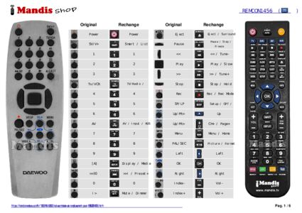 Un document est inclus pour vous aider à utiliser facilement la nouvelle télécommande, en indiquant la correspondance des boutons.