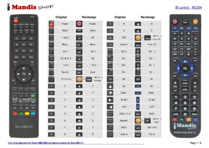 Un document est inclus pour vous aider à utiliser facilement la nouvelle télécommande, en indiquant la correspondance des boutons.