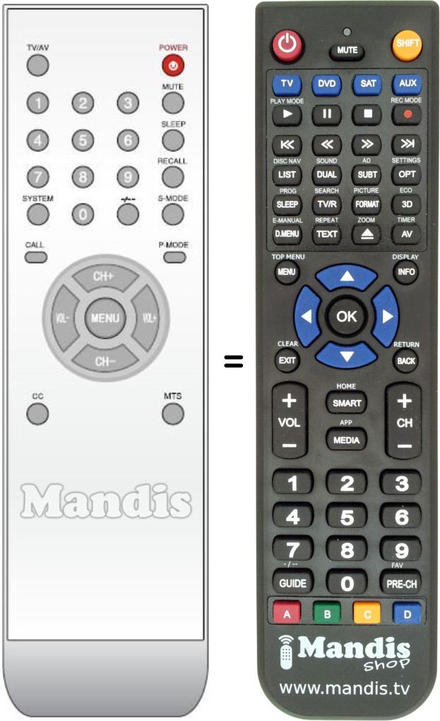 Cette télécommande remplace complètement votre télécommande d'origine dans toutes ses fonctions. Ce n'est pas une télécommande universelle, mais une copie exacte de votre télécommande d'origine.