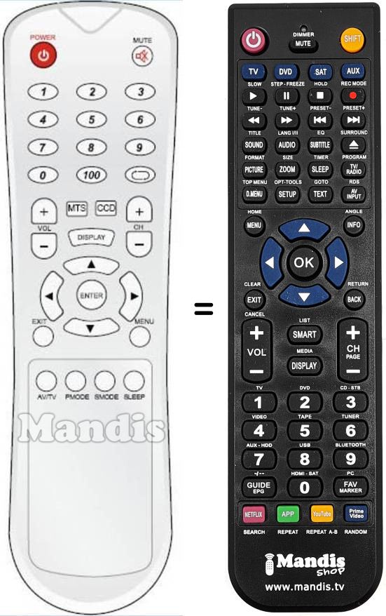 Télécommande qui remplace celle d'origine car elle possède les mêmes fonctions.