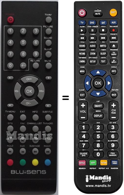 Télécommande qui remplace celle d'origine car elle possède les mêmes fonctions.