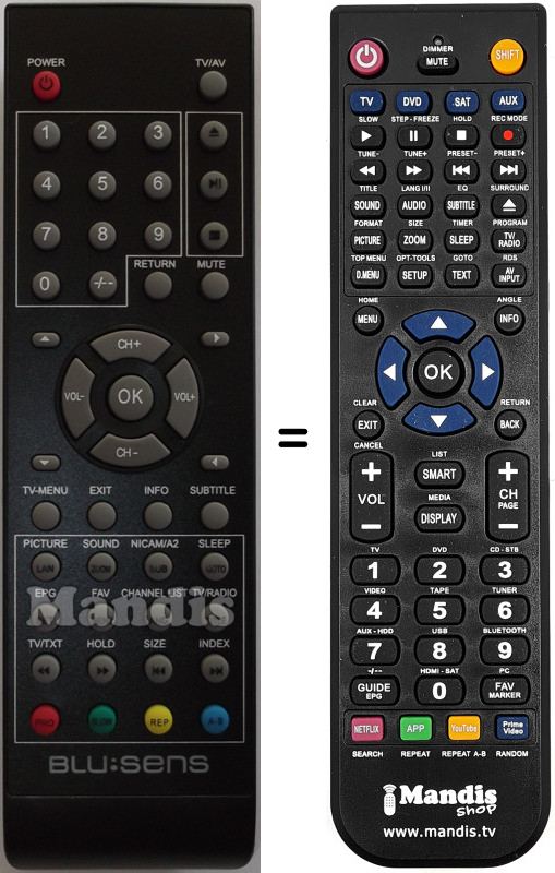 Télécommande qui remplace celle d'origine car elle possède les mêmes fonctions.