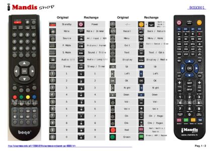 Un document est inclus pour vous aider à utiliser facilement la nouvelle télécommande, en indiquant la correspondance des boutons.