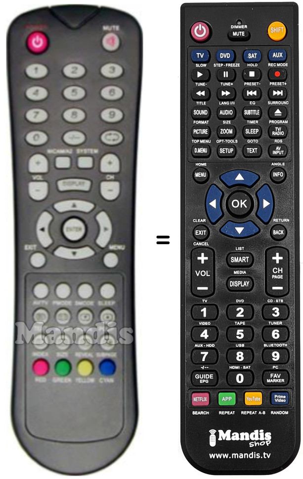 Télécommande qui remplace celle d'origine car elle possède les mêmes fonctions. Il ne s'agit pas d'une télécommande universelle mais d'une télécommande qui remplace celle d'origine. Vous recevrez la télécommande prête à fonctionner, vous n'aurez qu'à mettre les piles. Il n'est pas nécessaire de la programmer. Nous vous garantissons que la télécommande aura exactement les mêmes fonctions que celle d'origine.