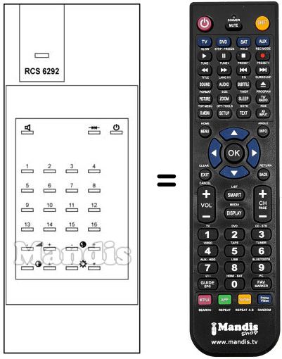 Télécommande qui remplace celle d'origine car elle possède les mêmes fonctions.