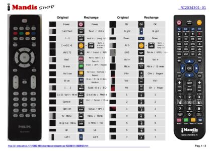Un document est inclus pour vous aider à utiliser facilement la nouvelle télécommande, en indiquant la correspondance des boutons.