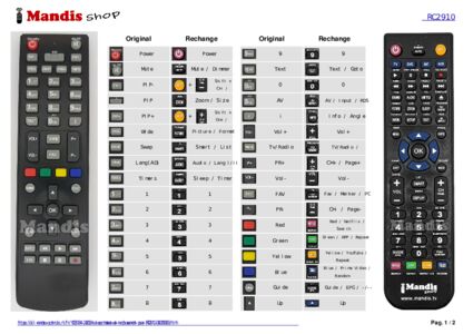 Un document est inclus pour vous aider à utiliser facilement la nouvelle télécommande, en indiquant la correspondance des boutons.