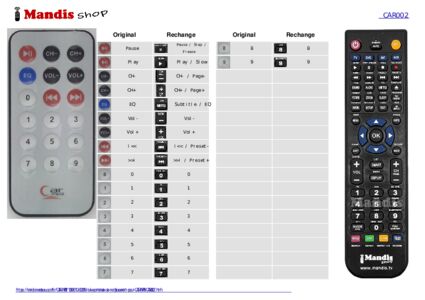 Un document est inclus pour vous aider à utiliser facilement la nouvelle télécommande, en indiquant la correspondance des boutons.