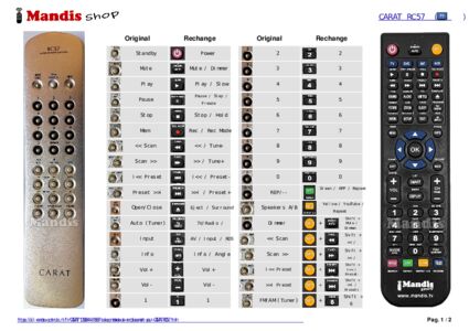 Un document est inclus pour vous aider à utiliser facilement la nouvelle télécommande, en indiquant la correspondance des boutons.