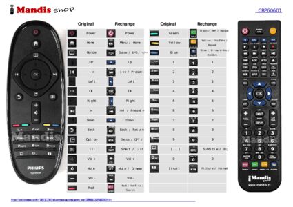 Un document est inclus pour vous aider à utiliser facilement la nouvelle télécommande, en indiquant la correspondance des boutons.