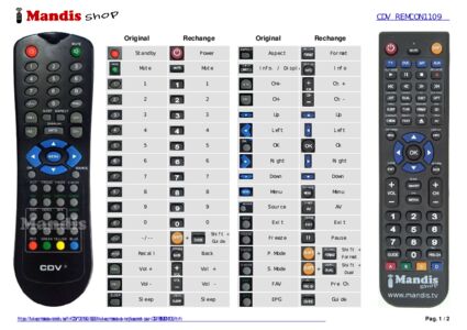 Un document est inclus pour vous aider à utiliser facilement la nouvelle télécommande, en indiquant la correspondance des boutons.