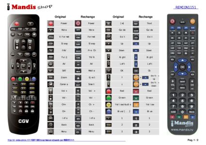 Un document est inclus pour vous aider à utiliser facilement la nouvelle télécommande, en indiquant la correspondance des boutons.