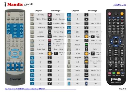 Un document est inclus pour vous aider à utiliser facilement la nouvelle télécommande, en indiquant la correspondance des boutons.