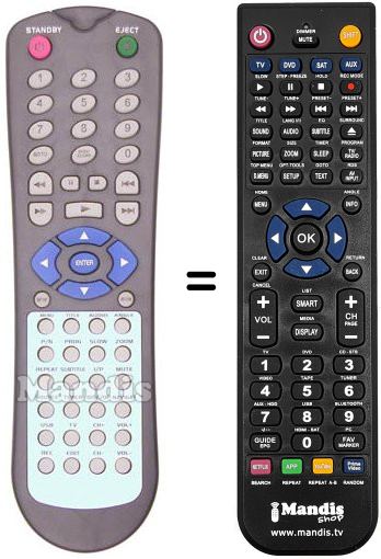 Télécommande qui remplace celle d'origine car elle possède les mêmes fonctions.