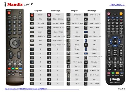 Un document est inclus pour vous aider à utiliser facilement la nouvelle télécommande, en indiquant la correspondance des boutons.