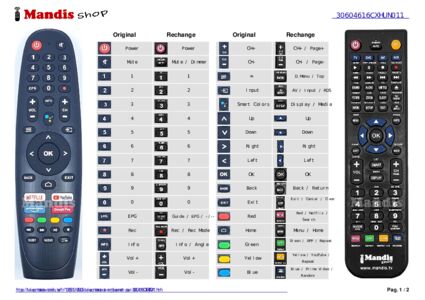 Un document est inclus pour vous aider à utiliser facilement la nouvelle télécommande, en indiquant la correspondance des boutons.