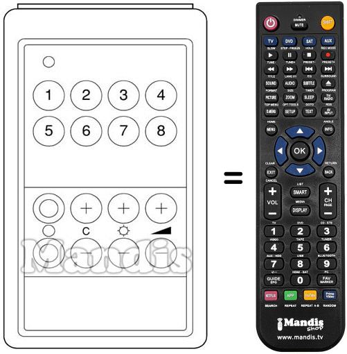 Télécommande qui remplace celle d'origine car elle possède les mêmes fonctions.