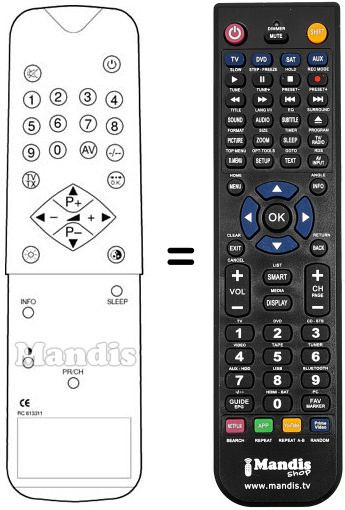 Télécommande qui remplace celle d'origine car elle possède les mêmes fonctions.