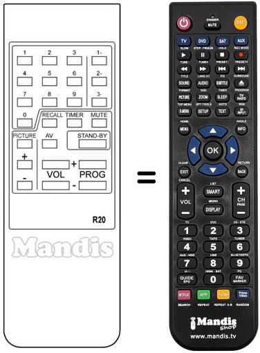 Télécommande qui remplace celle d'origine car elle possède les mêmes fonctions.