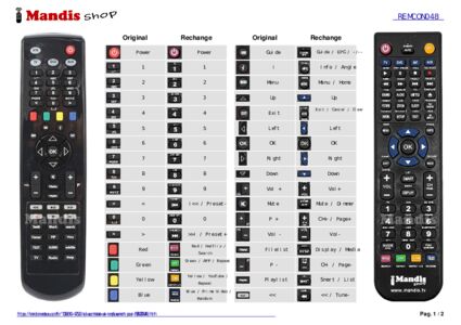 Un document est inclus pour vous aider à utiliser facilement la nouvelle télécommande, en indiquant la correspondance des boutons.
