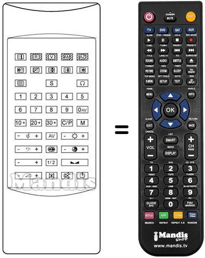 Télécommande qui remplace celle d'origine car elle possède les mêmes fonctions.