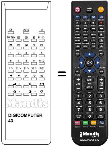 Télécommande qui remplace celle d'origine car elle possède les mêmes fonctions.