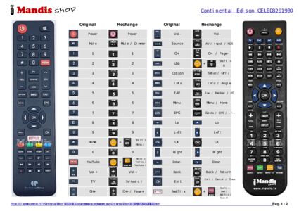 Un document est inclus pour vous aider à utiliser facilement la nouvelle télécommande, en indiquant la correspondance des boutons.
