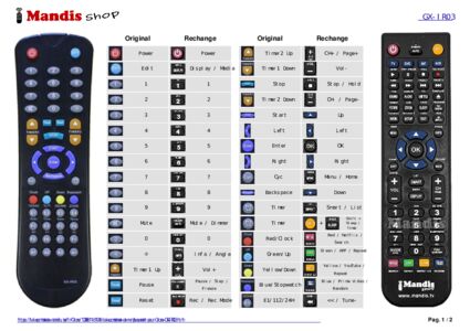 Un document est inclus pour vous aider à utiliser facilement la nouvelle télécommande, en indiquant la correspondance des boutons.