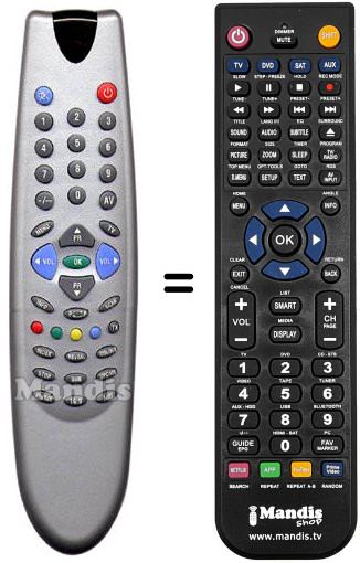 Télécommande qui remplace celle d'origine car elle possède les mêmes fonctions.