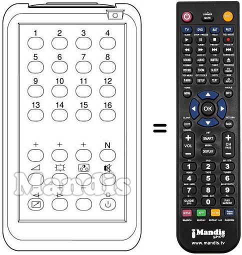 Télécommande qui remplace la télécommande d'origine 090800130 car elle possède les mêmes fonctions.