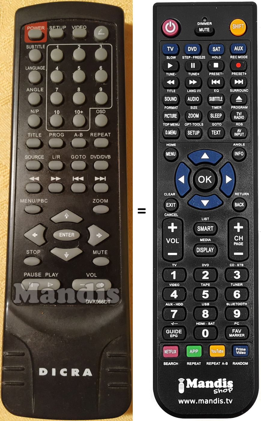 Télécommande qui remplace celle d'origine car elle possède les mêmes fonctions.