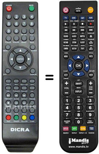 Télécommande qui remplace celle d'origine car elle possède les mêmes fonctions.