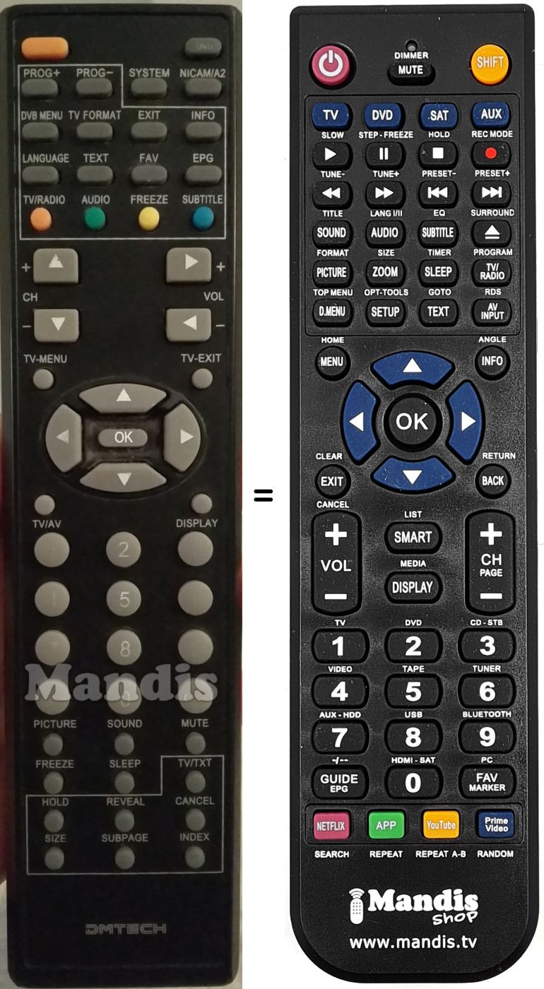 Télécommande qui remplace celle d'origine car elle possède les mêmes fonctions.