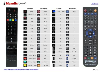 Un document est inclus pour vous aider à utiliser facilement la nouvelle télécommande, en indiquant la correspondance des boutons.