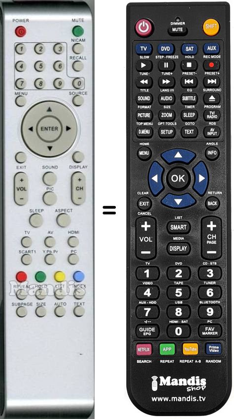 Télécommande qui remplace celle d'origine car elle possède les mêmes fonctions.