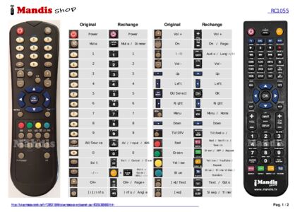 Un document est inclus pour vous aider à utiliser facilement la nouvelle télécommande, en indiquant la correspondance des boutons.