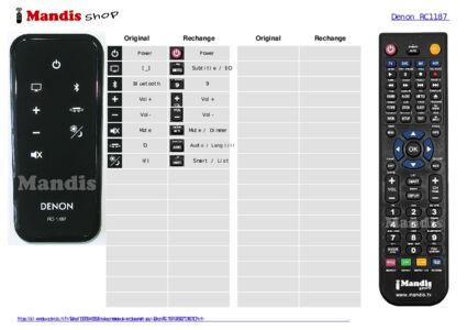 Accueil > Marques > Télécommandes Denon > Télécommande pour DENON RC1187 (978307101600D)