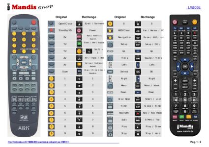 Un document est inclus pour vous aider à utiliser facilement la nouvelle télécommande, en indiquant la correspondance des boutons.