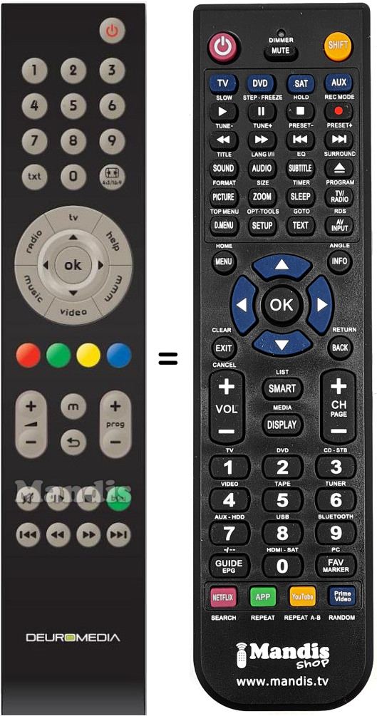 Télécommande qui remplace celle d'origine car elle possède les mêmes fonctions.