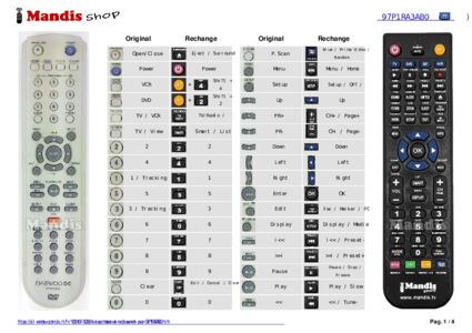 Un document est inclus pour vous aider à utiliser facilement la nouvelle télécommande, en indiquant la correspondance des boutons.