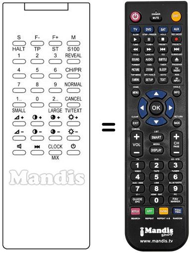 Télécommande qui remplace celle d'origine car elle possède les mêmes fonctions.
