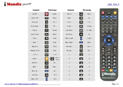 Un document est inclus pour vous aider à utiliser facilement la nouvelle télécommande, en indiquant la correspondance des boutons.