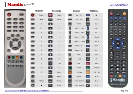Un document est inclus pour vous aider à utiliser facilement la nouvelle télécommande, en indiquant la correspondance des boutons.