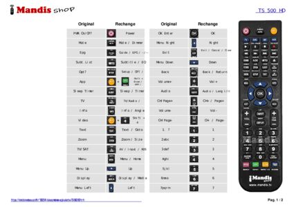 Un document est inclus pour vous aider à utiliser facilement la nouvelle télécommande, en indiquant la correspondance des boutons.