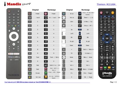 Un document est inclus pour vous aider à utiliser facilement la nouvelle télécommande, en indiquant la correspondance des boutons.