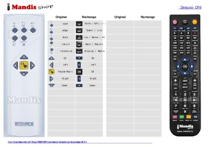 Cette télécommande remplace entièrement votre Deepoo (D76) et offre toutes les fonctions de l'originale.