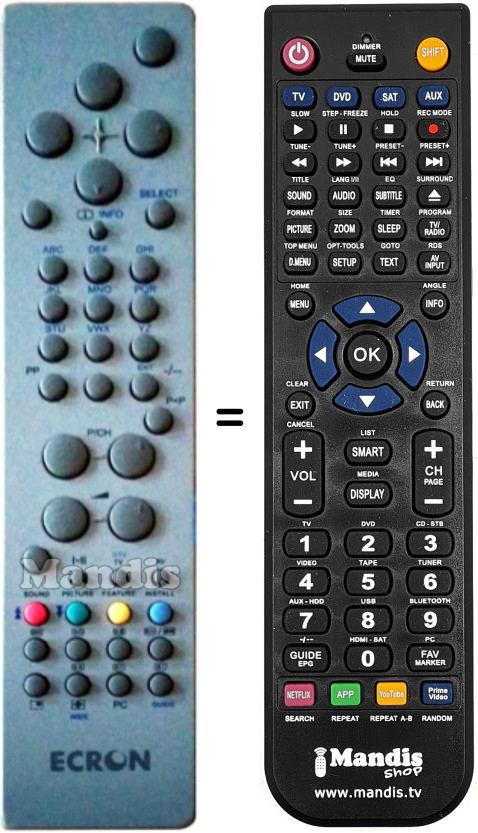 Télécommande qui remplace celle d'origine car elle possède les mêmes fonctions.