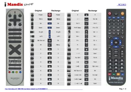 Un document est inclus pour vous aider à utiliser facilement la nouvelle télécommande, en indiquant la correspondance des boutons.