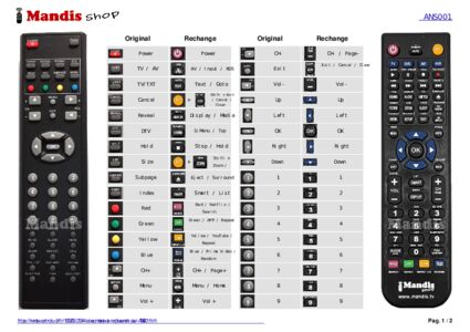 Un document est inclus pour vous aider à utiliser facilement la nouvelle télécommande, en indiquant la correspondance des boutons.