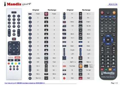 Un document est inclus pour vous aider à utiliser facilement la nouvelle télécommande, en indiquant la correspondance des boutons.